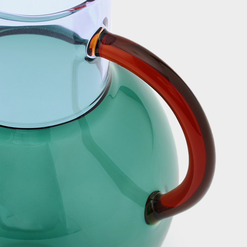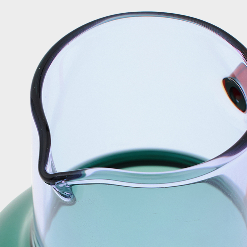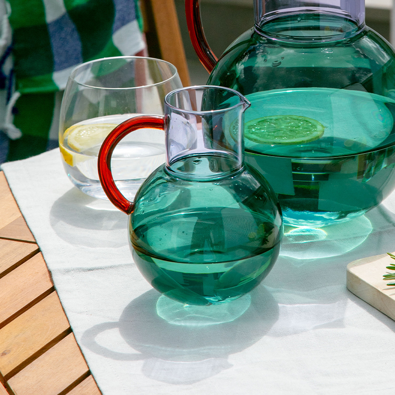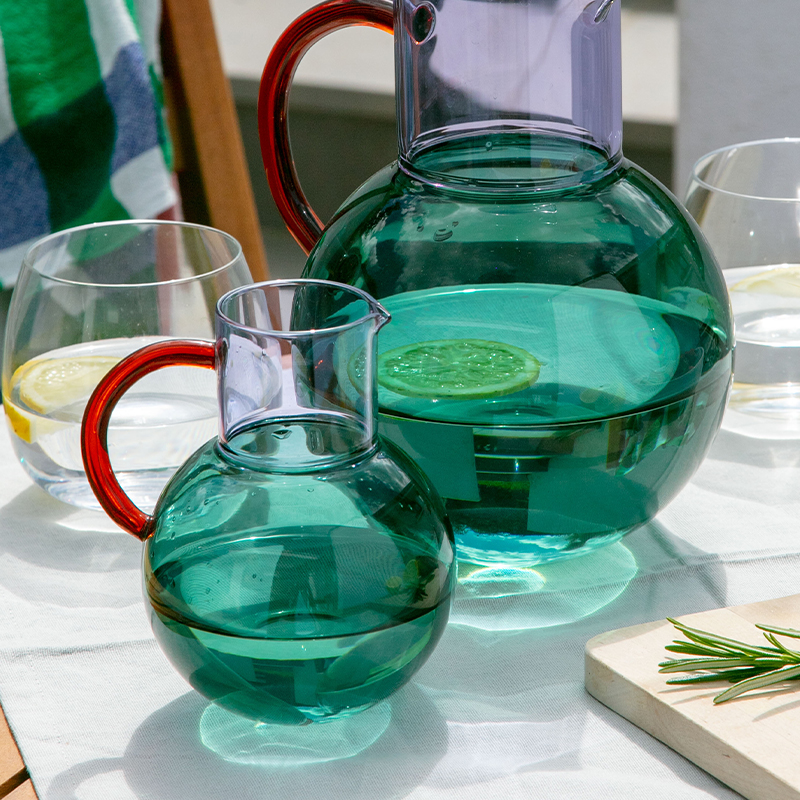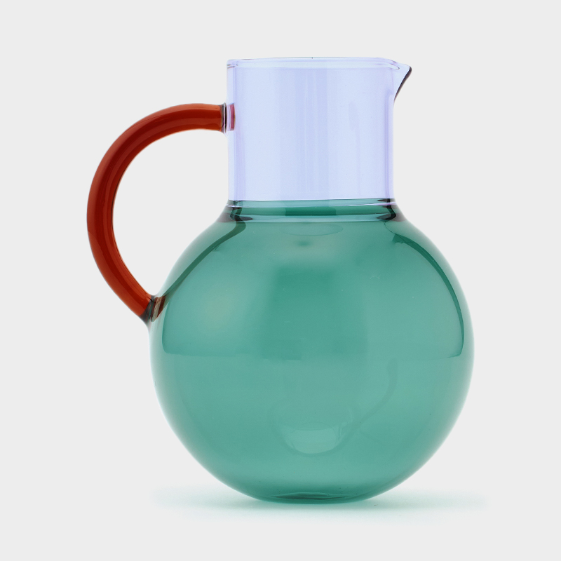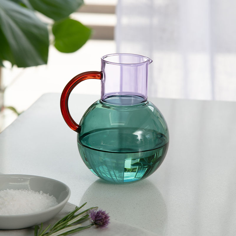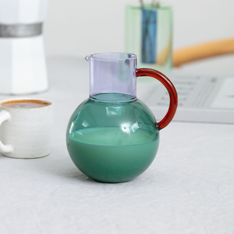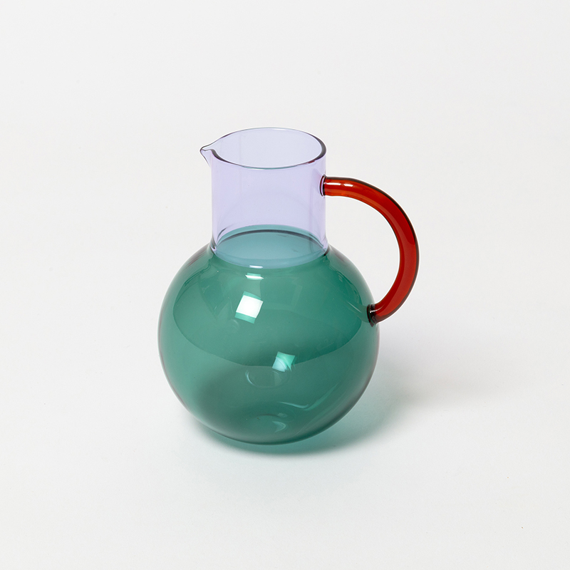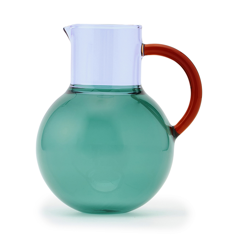 イギリスのコーンウォールを拠点とするブランドで、日常生活に喜びをもたらす、色鮮やかでなデザインの制作に情熱を注いでいるブランドです。3色に分かれたガラスのジャグ。