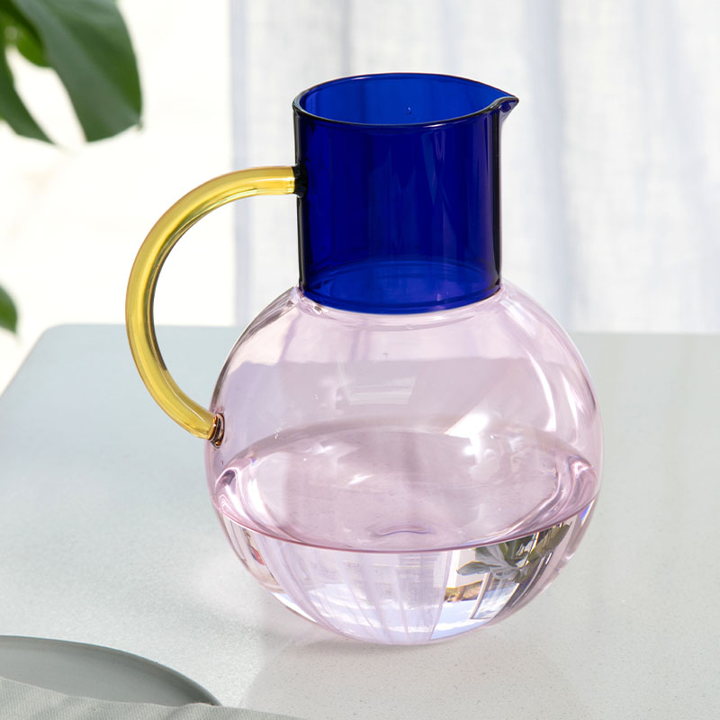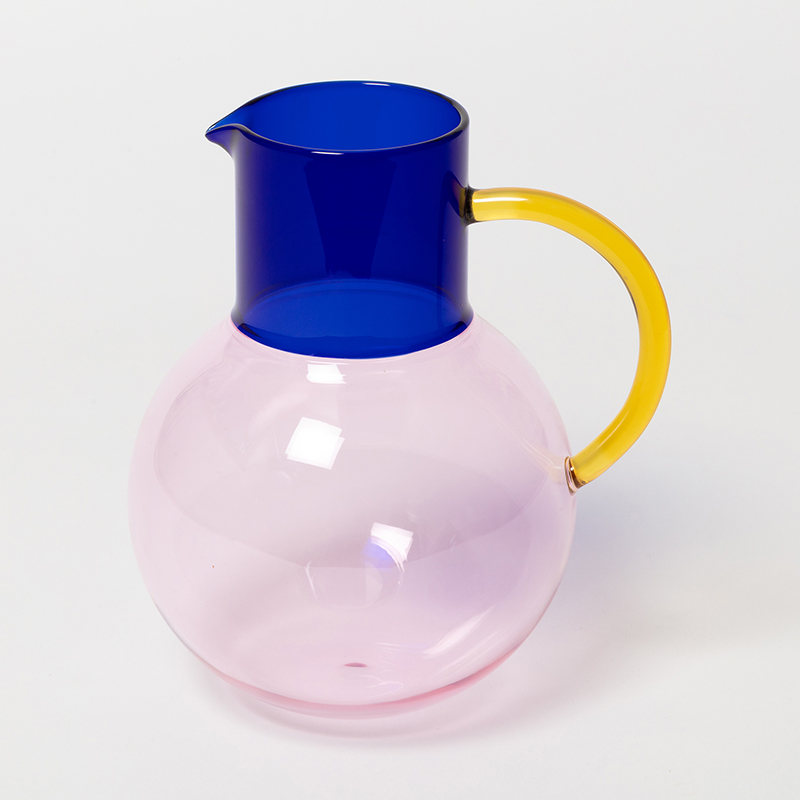 PABLO GLASS JUG L PINK COBALT YELLOW