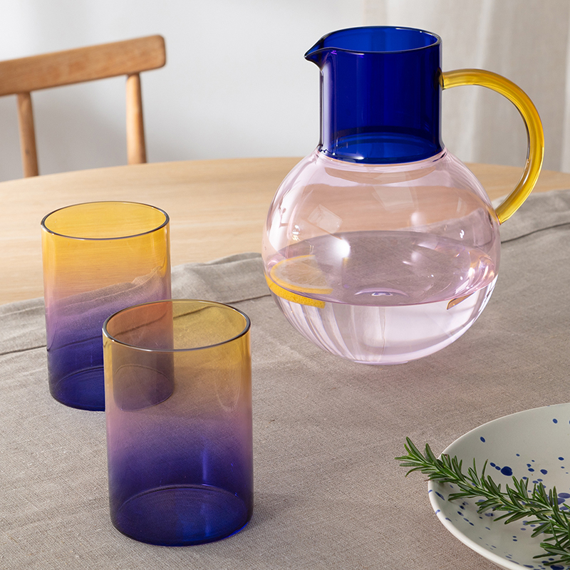 イギリスのコーンウォールを拠点とするブランドで、日常生活に喜びをもたらす、色鮮やかでなデザインの制作に情熱を注いでいるブランドです。豊かな色彩がシームレスに溶け合うグラデーションのグラス。