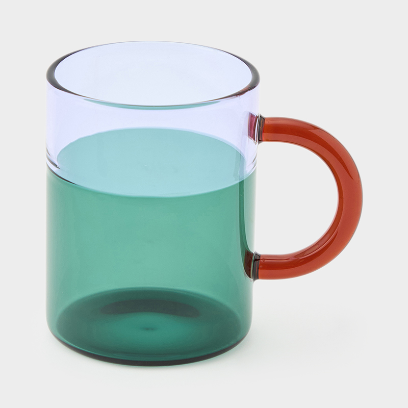 大胆なカラーブロックと洗練されたラインが特徴のガラスマグ。どんな食卓やキッチンにも存在感を放つアイテムです。シームレスな3色使いのデザインで、鮮やかな色合いが洗練されたモダンなシルエットをつくり出しています。
