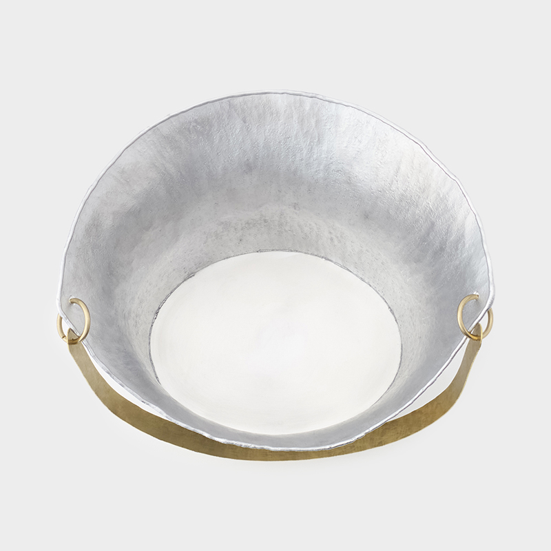 アーティストが一点一点パーツを切り出し、叩いて成形しています。静かな佇まいの中に金属ならではの表情が感じられ、食卓を豊かに彩る一品です。