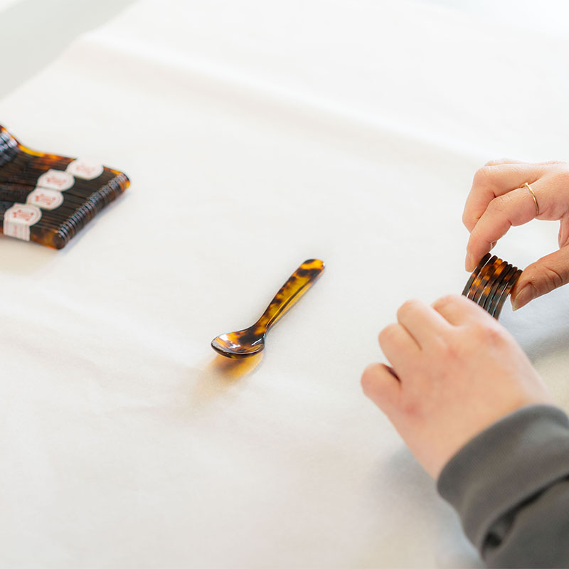 ハイムゾーネは1862年にドイツで創業したアクリル製品のメーカーです。安全で耐久性のある原料を使い、丁寧に手作業で作られています。透明感のあるカラフルなスプーンは、小さなお子さまから大人の方まで幅広くお使いいただけます。ヨーグルトやアイスクリームなどのデザートはもちろん、ジャムやソース用の小さめスプーンとしても活躍します。なめらかな口当たりと使い心地をぜひ体感してみてください。