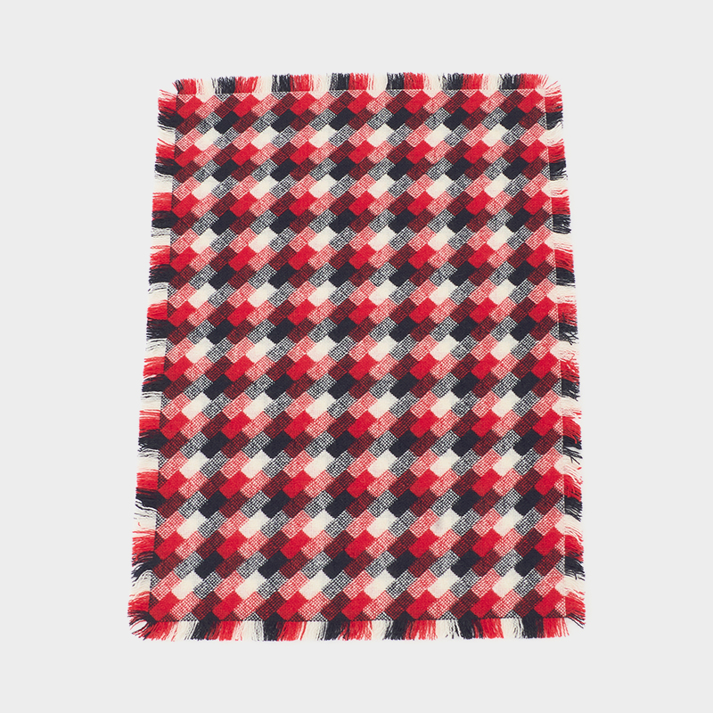 赤とシロ、ネイビーのたった3色のみで構成されていますが糸が織り重なることで深みのある表情を作り上げています。