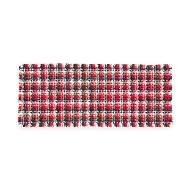 赤とシロ、ネイビーのたった3色のみで構成されていますが糸が織り重なることで深みのある表情を作り上げています。