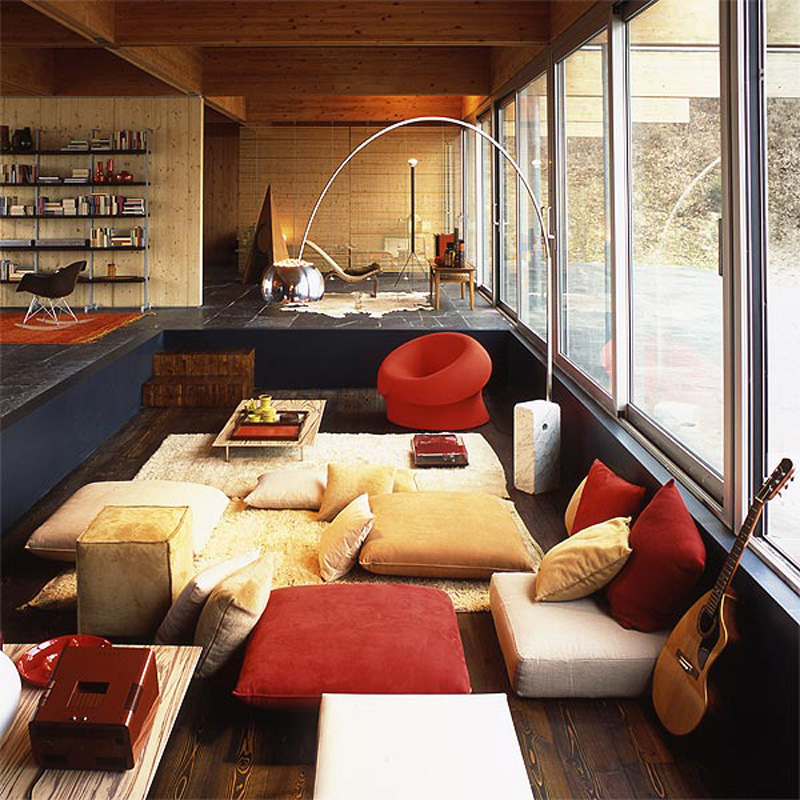 街灯のフォルムからインスピレーションを得て誕生したARCOは、天井に孔をあけなくても上部から光を得ることができます。また重さ約60㎏の大理石の孔に棒を通すと、解体せずに二人で簡単に移動させることも可能な機能的なプロダクトです。幅約2mのダイナミックなアーチ寸法は、シェードをテーブルの中心にレイアウトし、椅子に座りその後ろを人が通っても空間的余裕がある寸法です。約60㎏の大理石の塊と2mのアームの組み合わせという斬新な発想で、細部にいたるまで計算しつくされたマスターピースです。