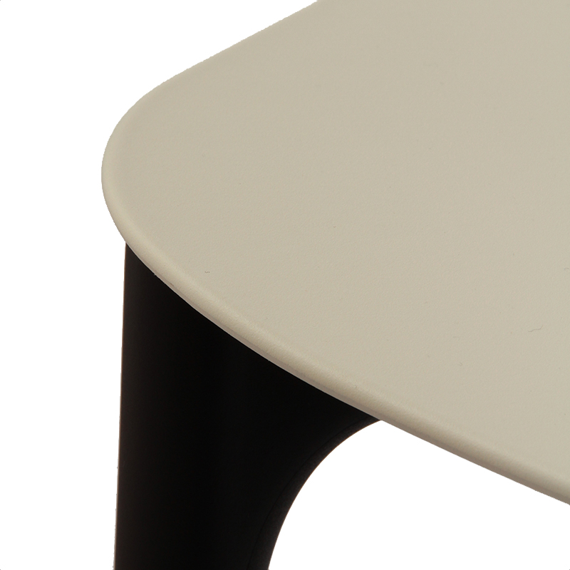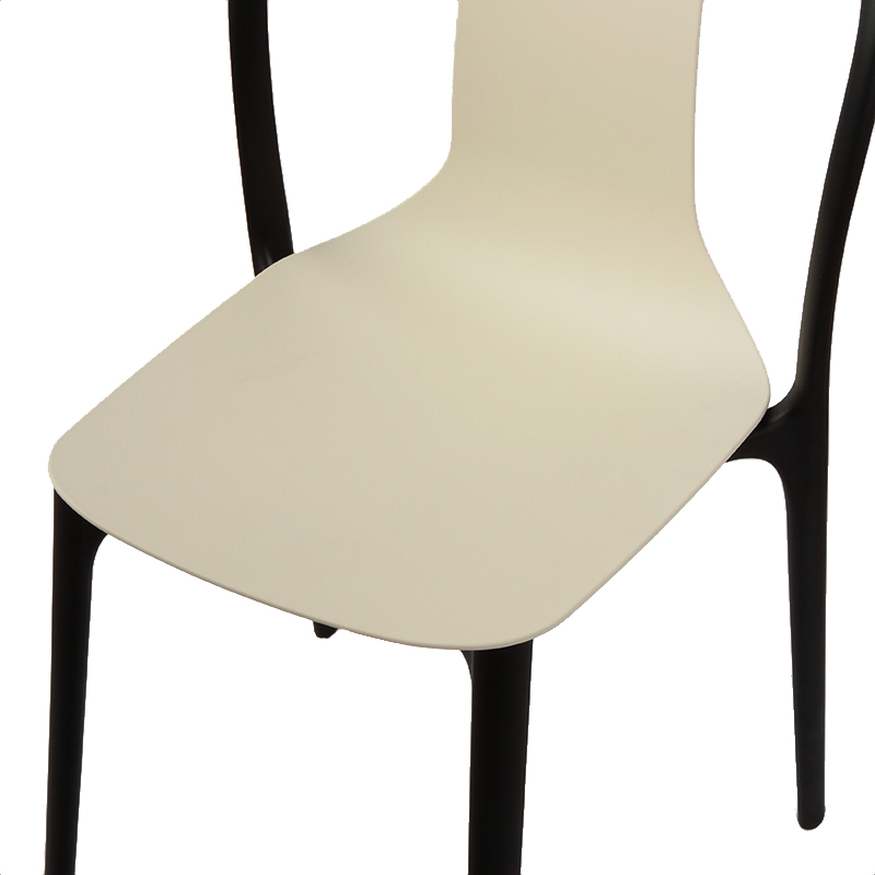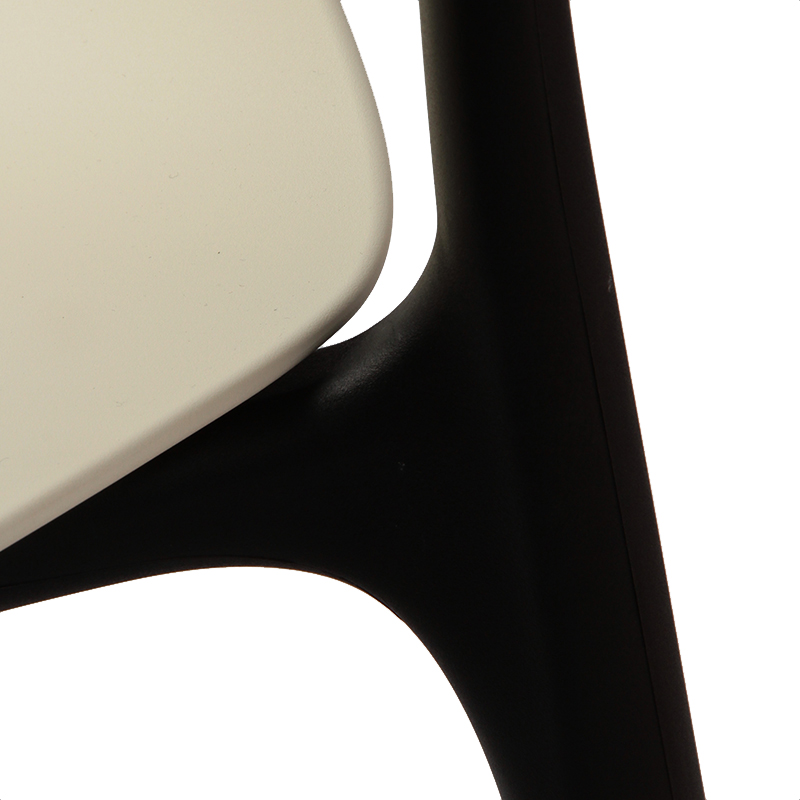 スレンダーな黒のフレームは、脚や背面に向かって書道の線を思わせるようなラインを描いています。一方シートシェルは、広めの座面が背もたれにかけて細くなっていき、非常に薄いシェルを支えています。