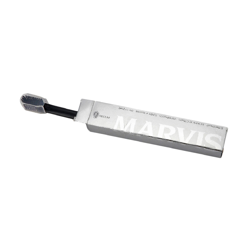 ブラックで統一されたデザインに、MARVIS のロゴが映えるシックな歯ブラシです。