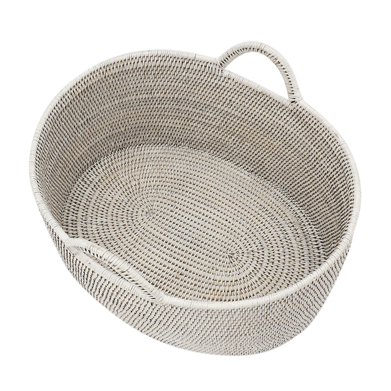 丁寧に編まれたラタンのバスケットは、そのデザイン性のみならず、しなやかで充分な強度があるのが特徴です。飽きのこないシンプルさは編み目の美しさを際立たせ、さまざまなインテリアに馴染み、末永くお使いいただけます。