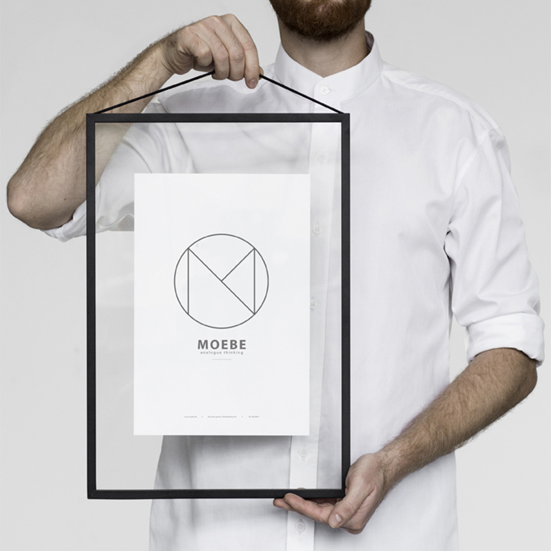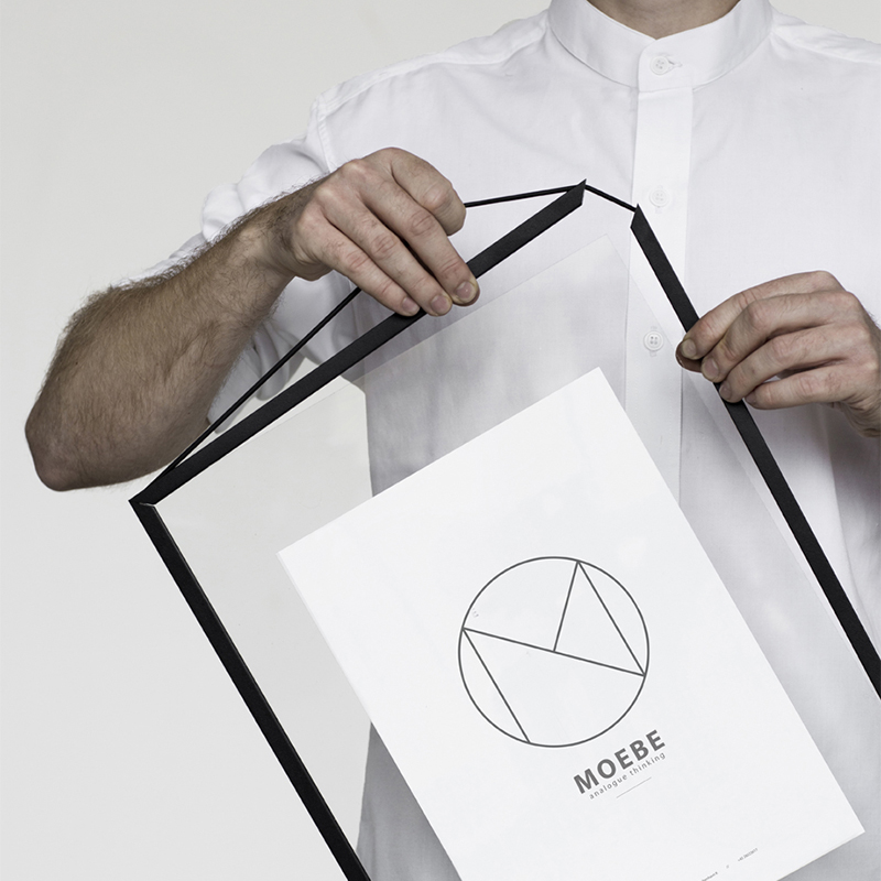 「良いデザインとは、それ自体がサステナブル(持続可能なもの)である」という信条のもと、簡単にリペア、組立、リサイクルできるパーツで構成されています。アクリル板と枠材をラバーバンドで固定するだけの「FRAME(フレーム)」、くさびで棚板を固定するシンプルな構造の「シェルビングシステム」など、緻密な構造とミニマリズムを追求したプロダクトは発表されるや否やすぐに世界的な人気を博しています。普遍の形ともいえる“ 額縁 ”をこれまでにない観点から捉え直しデザインされたフレーム。