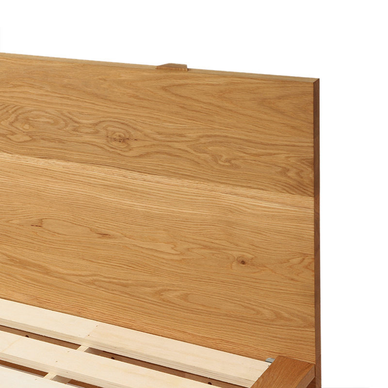 オーク の無垢材を無作為に剥ぎ合わせ、ヘッドボード、 フットボード をそれぞれ一枚の“表情豊 かなPLATE(板)”として加工した、ザ・コンランショップオリジナルのベッドです。