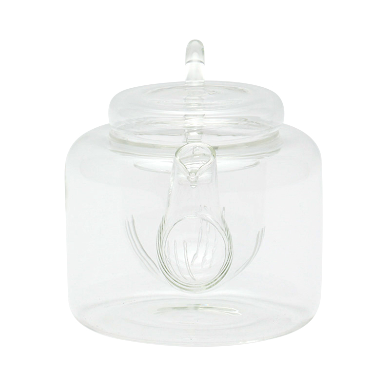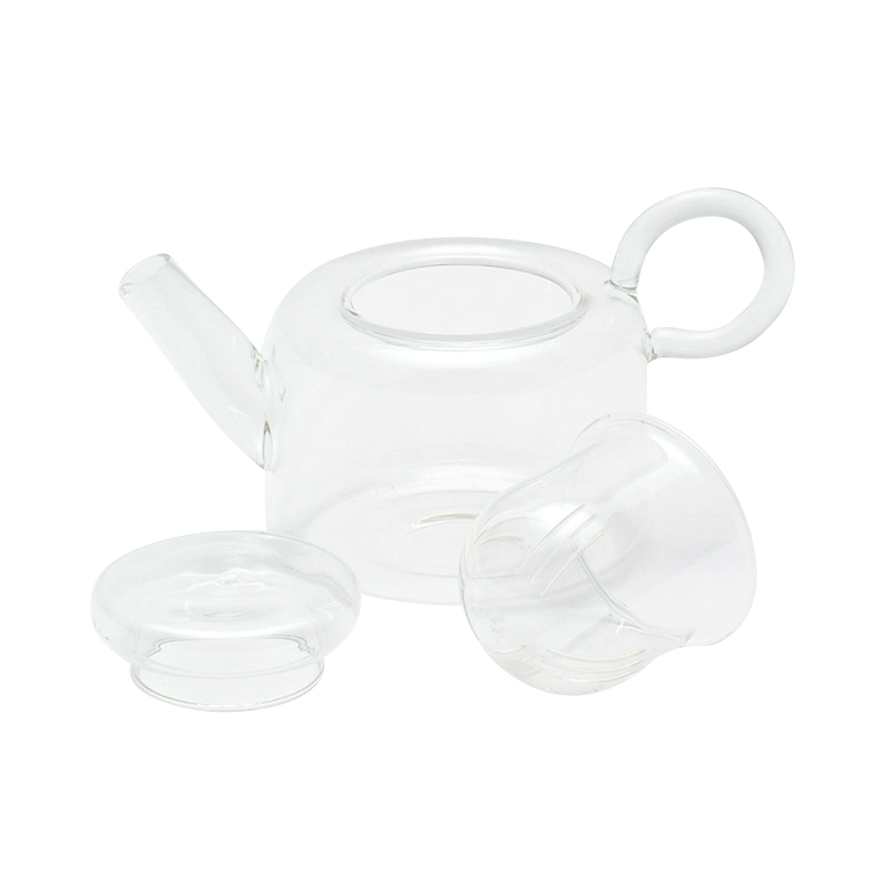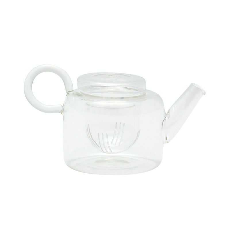 ・繊細な薄いガラスですので、お取り扱いには充分ご注意ください。クリアガラスの茶葉用フィルターもセットされたティーポット。