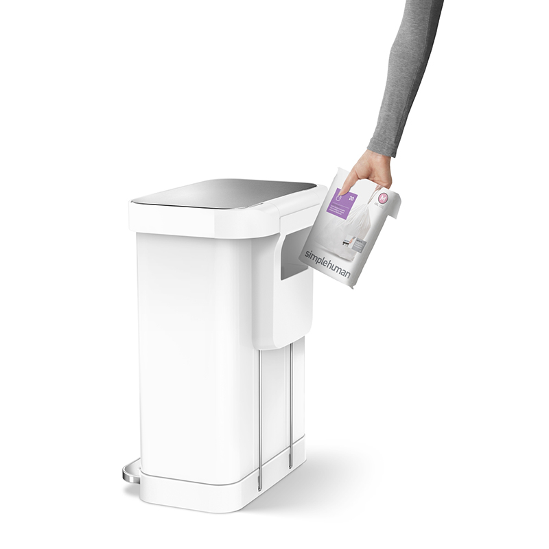 ステンレス製のレクタンギュラーステップダストボックスには、ゴミ袋を収納できる便利な「ライナーポケット」つき。