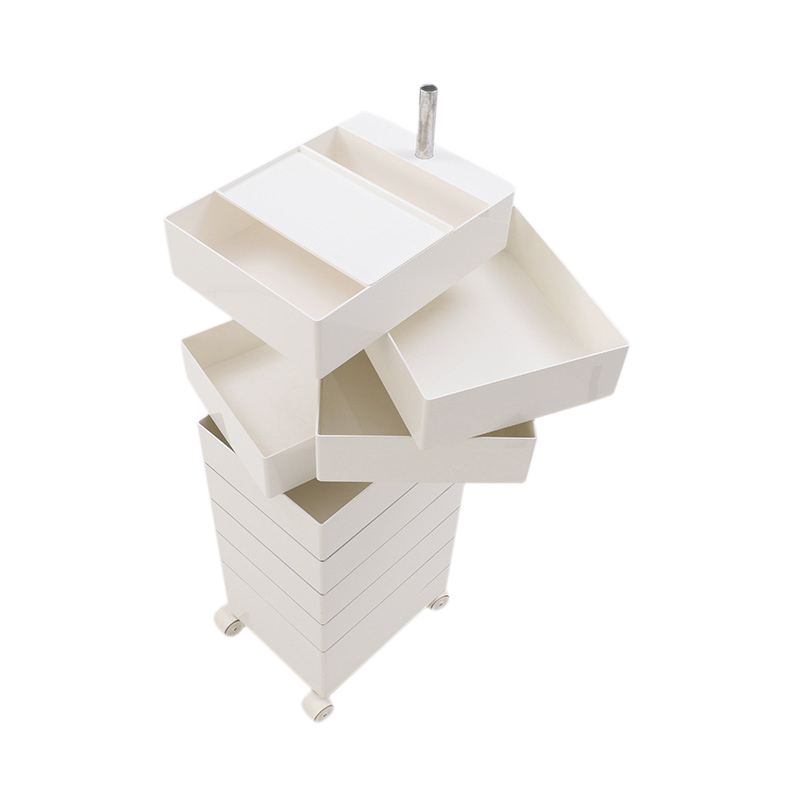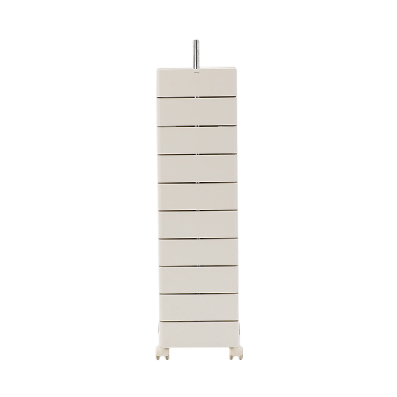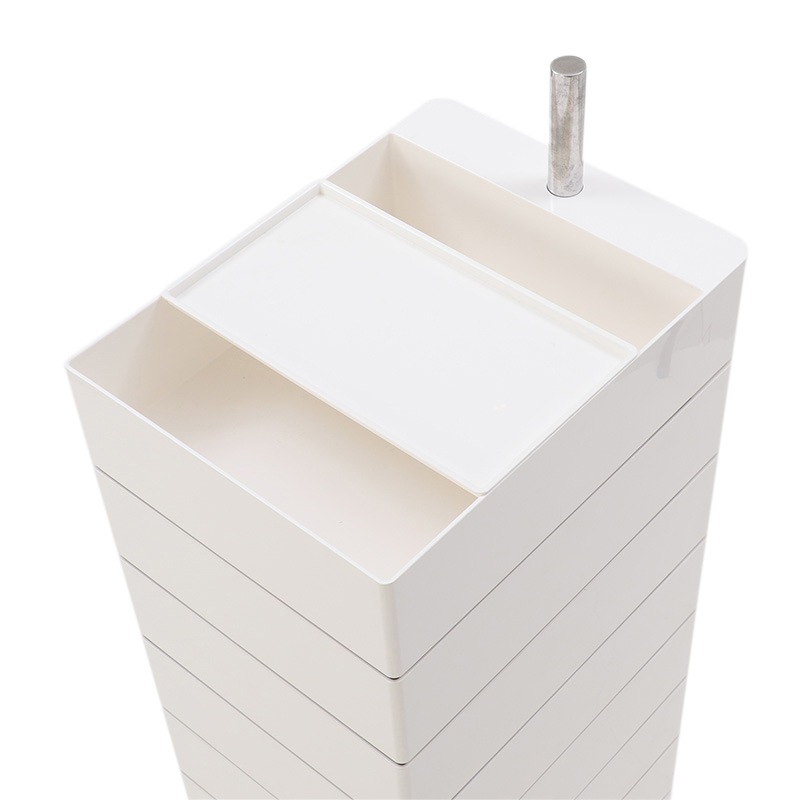 カッペリーニ、ドリアデ、フロス、イッタラ社等のデザインを手掛ける、コンスタンティン・グルチッチによる、軸を 中心に360度引き出しが回転する、自由自在な収納コンテナ。