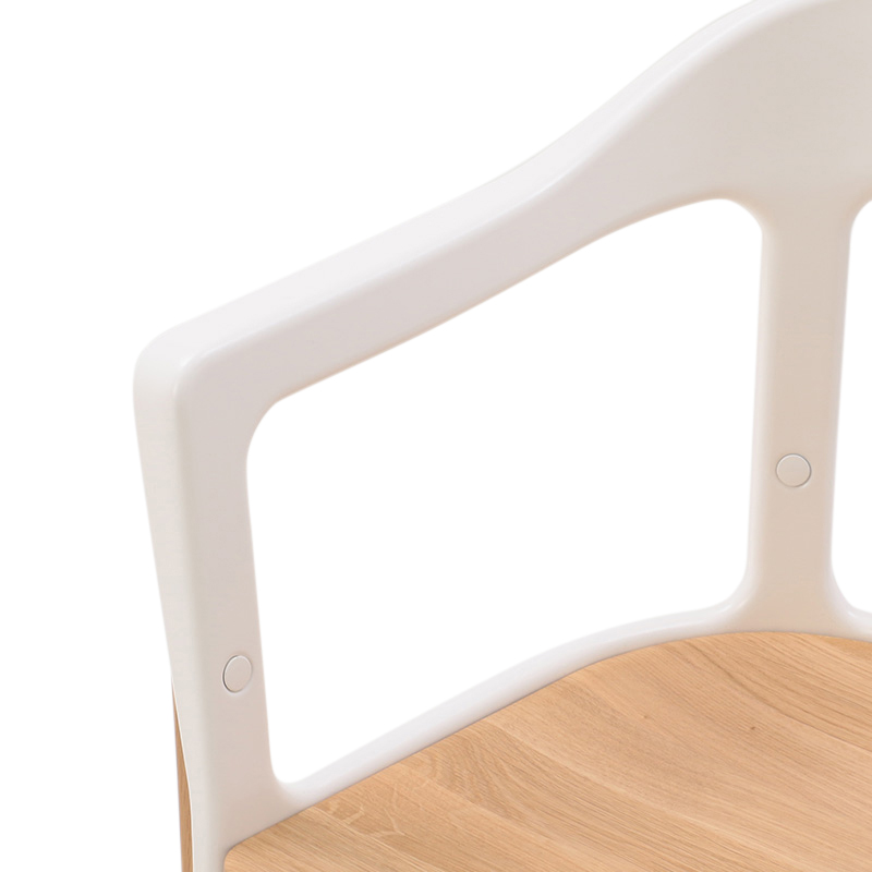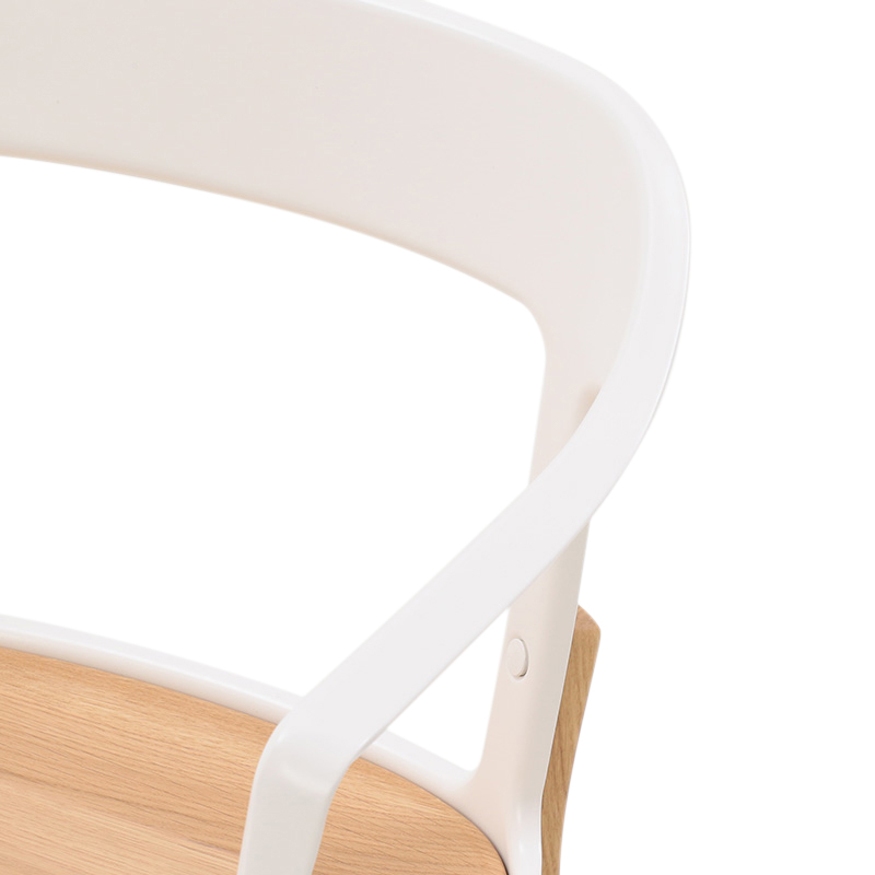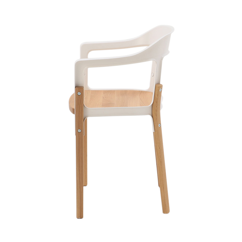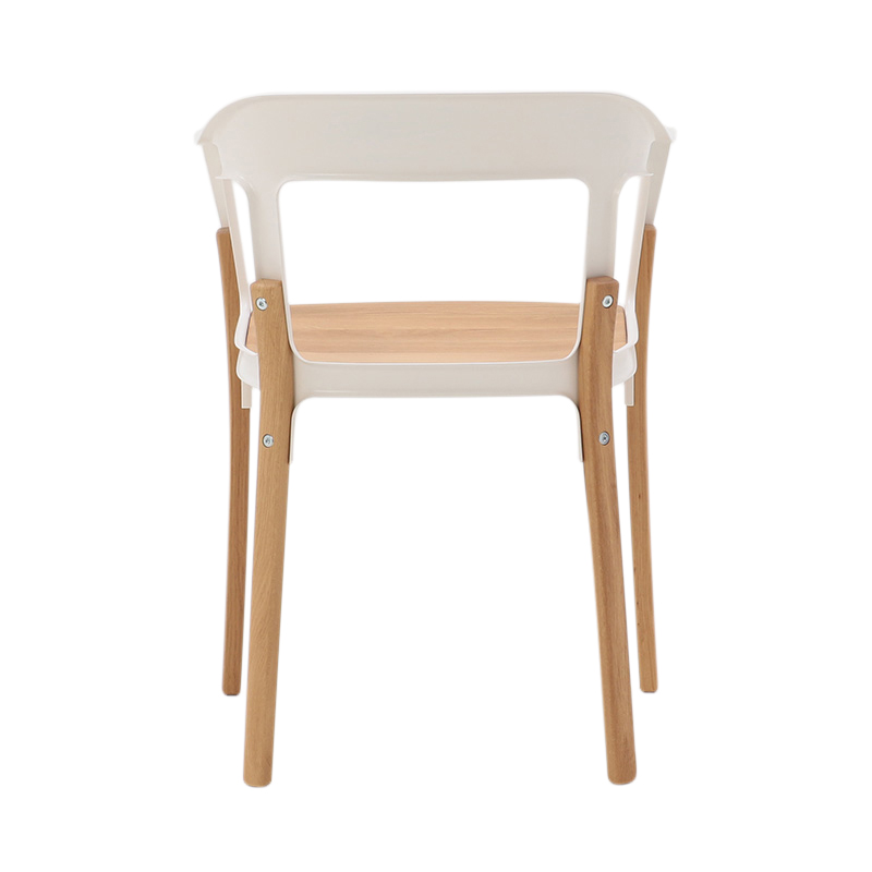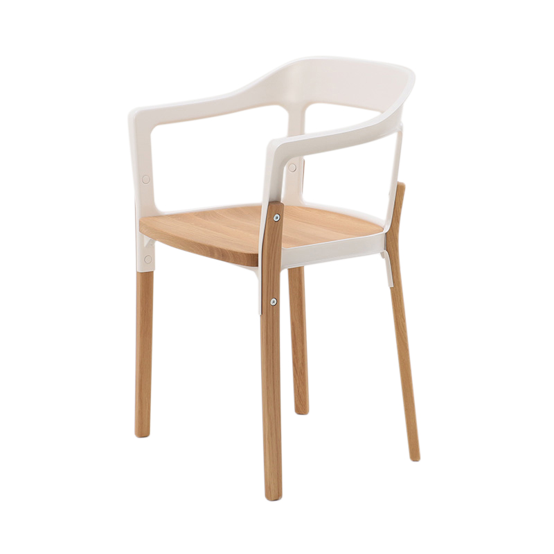 ジャン・プルーヴェのスタンダードチェアにインスピレーションを受けデザインされたこのチェアですが、スチールに木を組み合わせた異素材とのコラボレーションにより独特の雰囲気をかもし出しています。