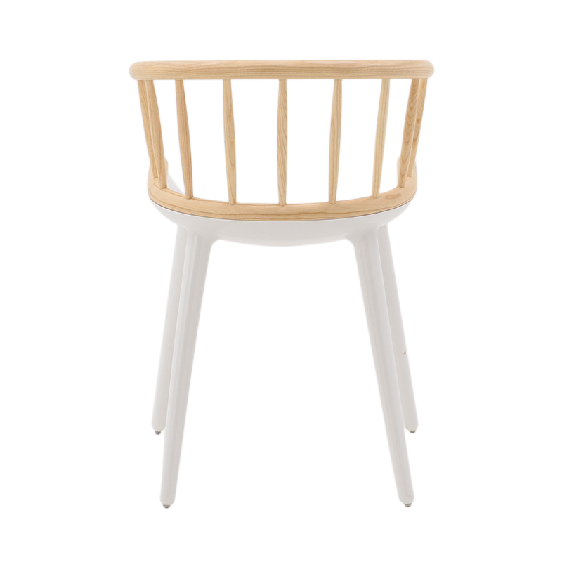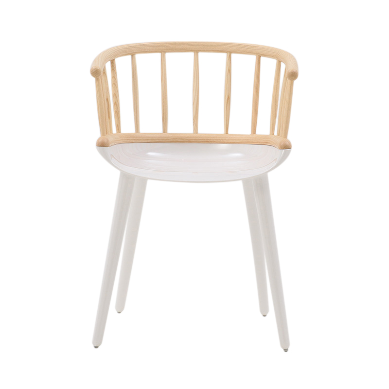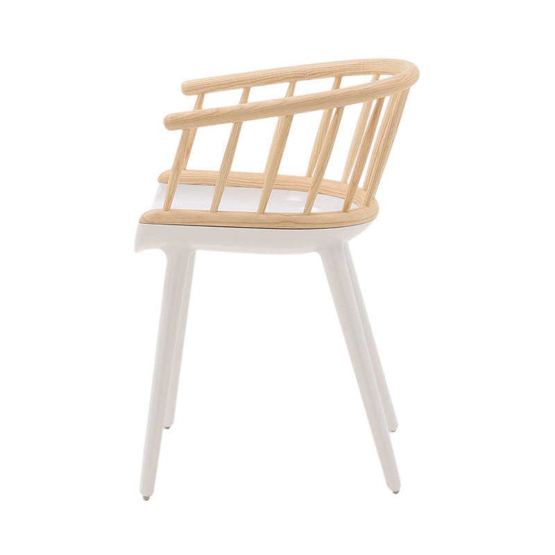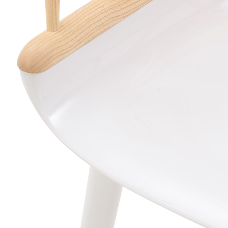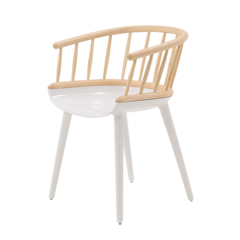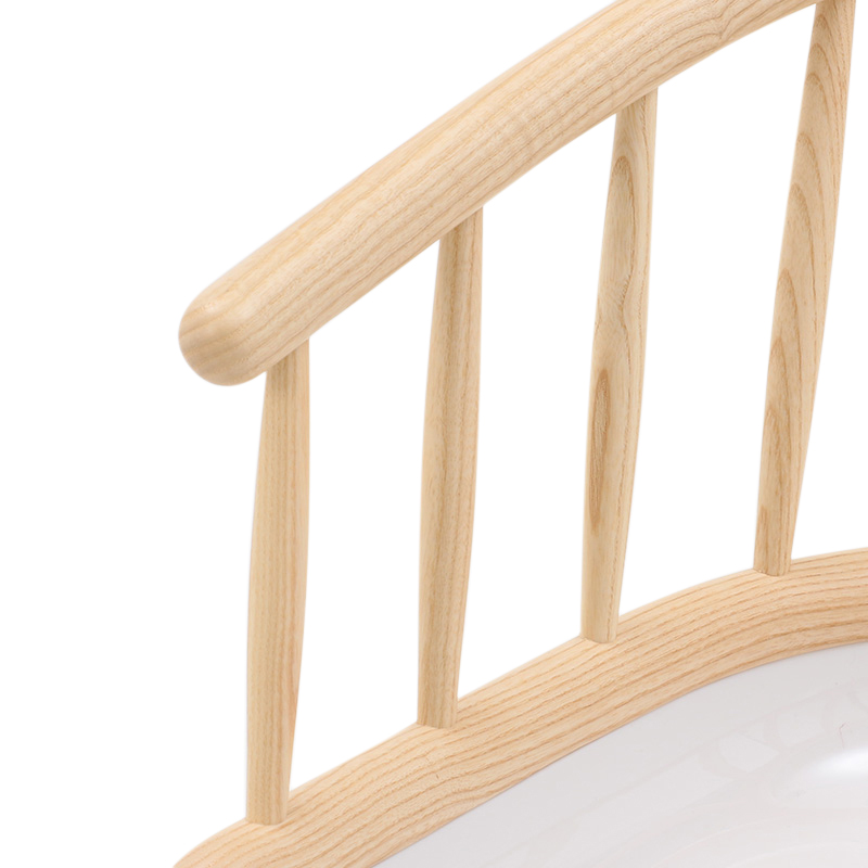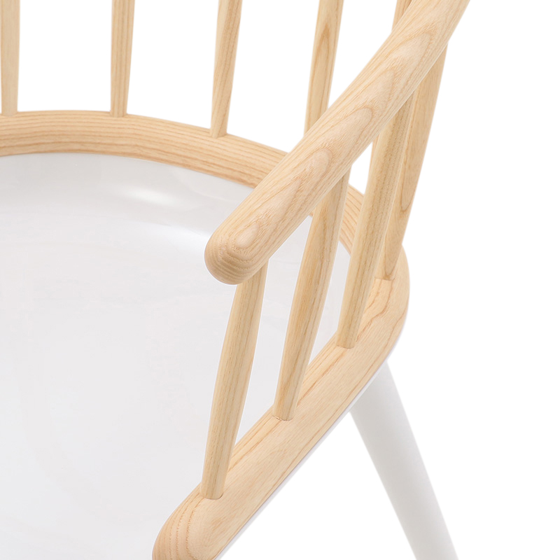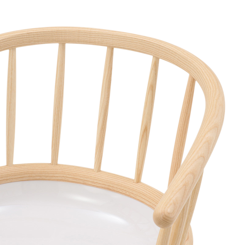 木製の背もたれをもつ「Stick」は、背の部分にアッシュ材の削り出しを使用し、家具職人の手によって美しく仕上げられ、触り心地も滑らか。