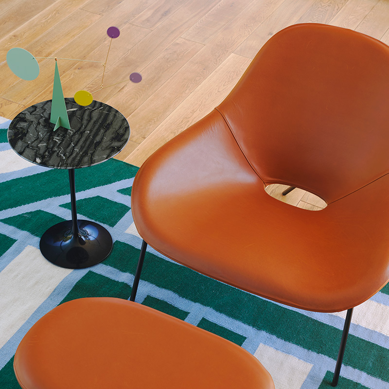 1956年、エーロ・サーリネンがノール社から発表した、このシリーズは一本脚にすることでテーブル周りに密集する脚をすっきりさせたいという発想から生まれました。