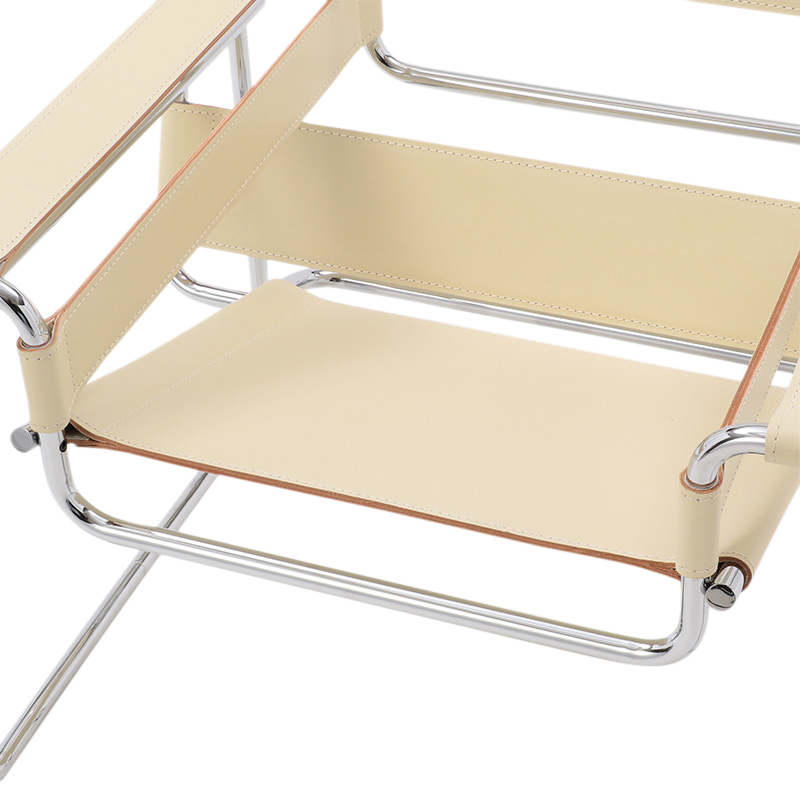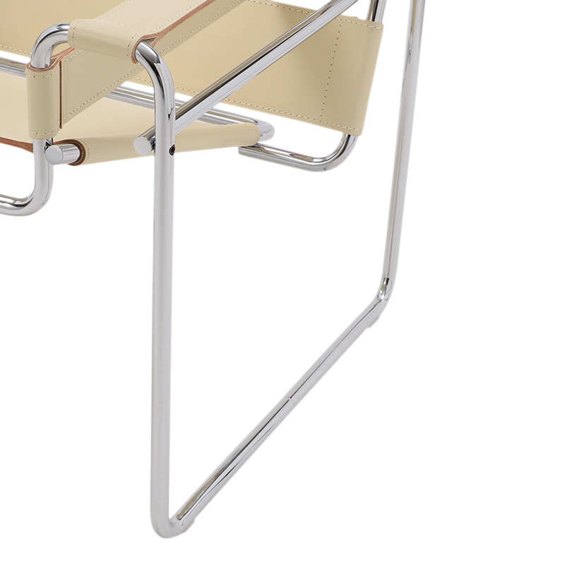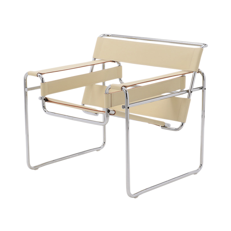 ブロイヤーは、当時のデ・ステイル運動の構成主義理論に影響を受け、古典的なクラブチェアの要素を削ぎ落とし、線と面で構成された新しい椅子を目指しました。その実験の中で、愛用していた自転車のハンドルやフレームから着想を得たスチールパイプを採用し、世界で初めてのスチールパイプチェアが誕生しました。