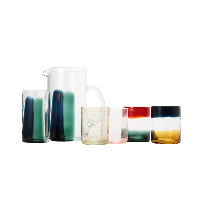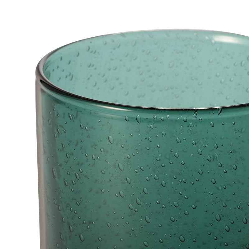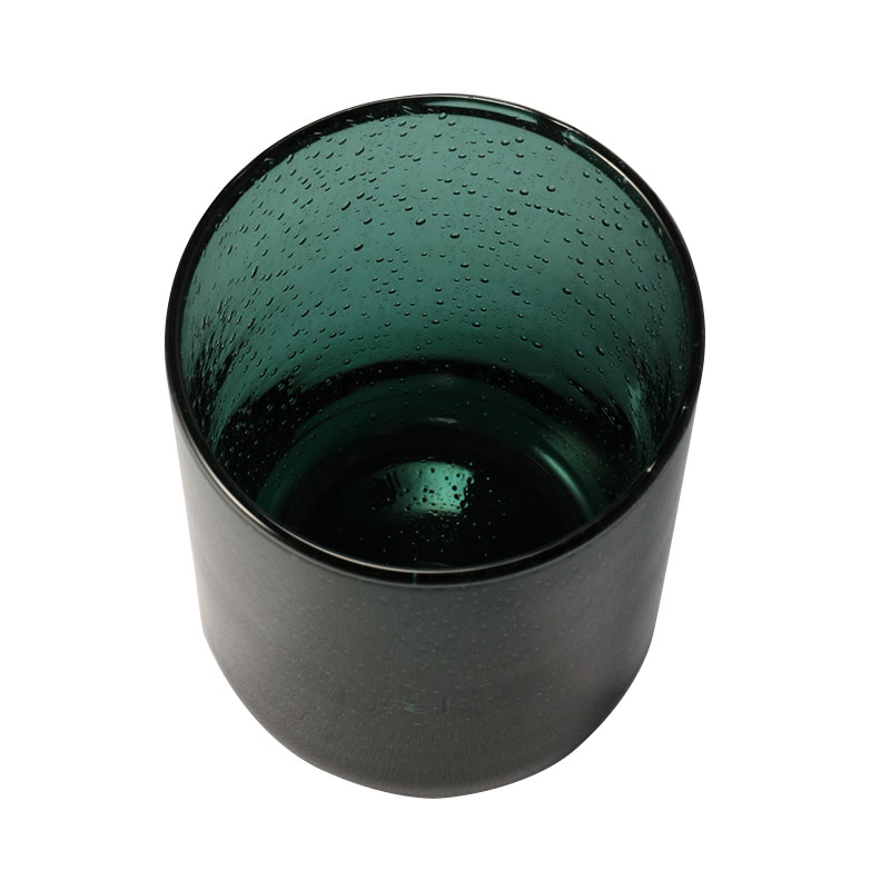 吹きガラスで丁寧に作られたグラスは、気泡の泡が散りばめられた美しいデザインです。