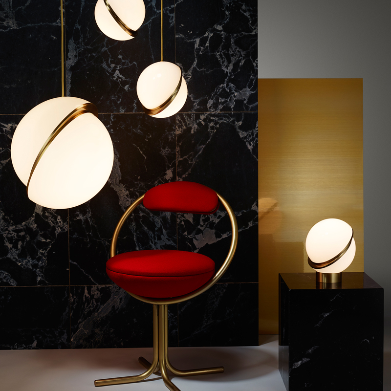 乳白色の球と真鍮のコントラストが美しい、存在感と輝きを合わせ持ったコレクションです。