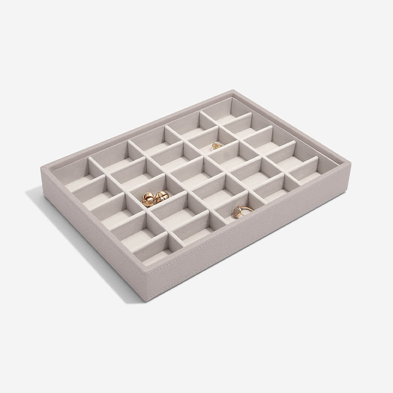 ボックスに使われているヴィーガンレザーは、軽くて柔らかく、耐久性に優れ、動物保護の観点からも現在注目を集めている素材です。内側は柔らかなベルベット張りで、大切なジュエリーを傷つけません。単品でのご使用も可能ですが、必要なパーツをカスタマイズして、あなただけのジュエリーボックスをお作りください。