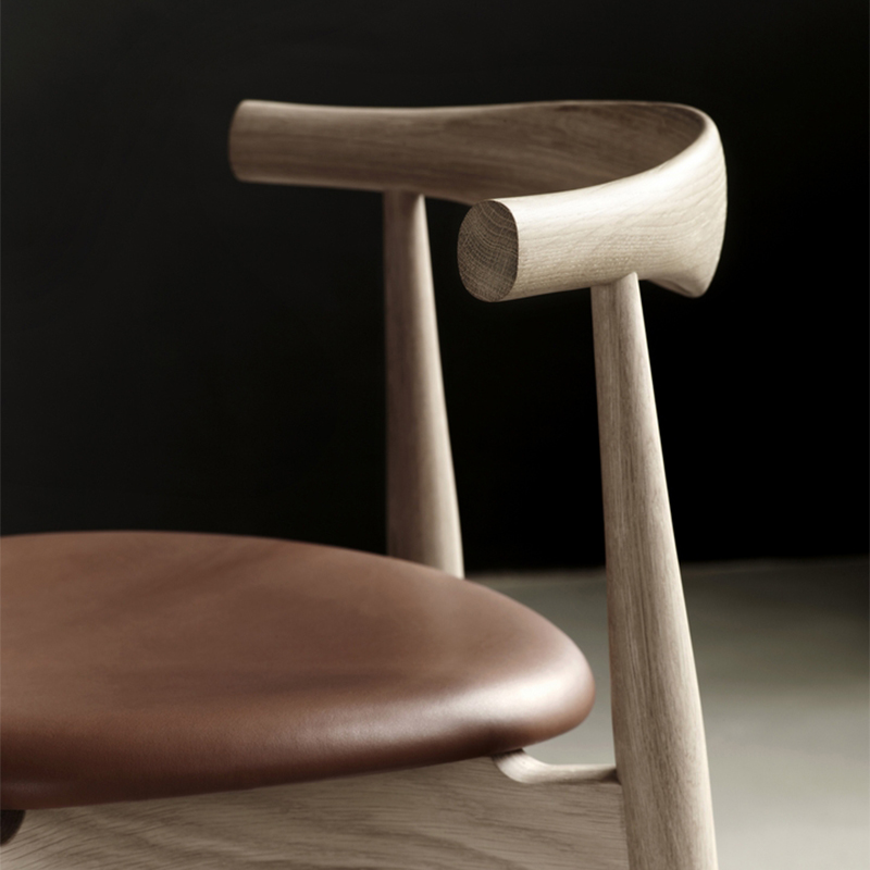 座のフォルムは曲線を描く背の形状を反映したもの。脚の上部にまるで浮いて見えるようにデザインされています。ハンス J. ウェグナーのエルボーチェアは2005年、カール・ハンセン&サンが発表すると同時に世界各国で大きな反響を集め、その年のニューヨークICFFエディター賞に輝いています。