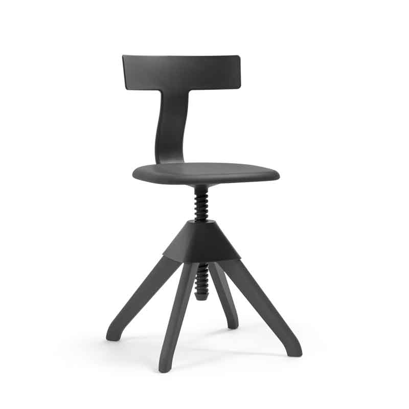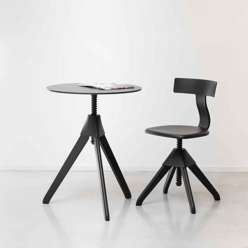 座面をまわすことによって昇降する機能が、デザインの要になっているサイドチェア。