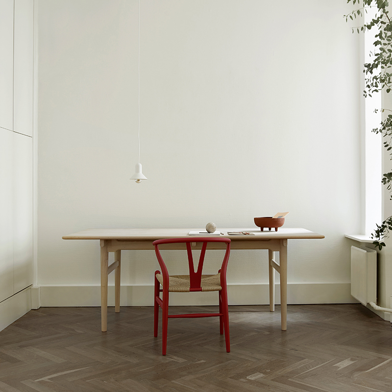 CH24 SOFT は、人・環境にやさしい水性の塗料でマットに仕上げ、これまでのCHカラーシリーズとは全く異なるプレーンでよりモダンな雰囲気を感じることのできるやわらかい風合いが特徴的です。1949年 カール・ハンセン&サンは、ハンス J. ウェグナーとの協働をスタートし、初めに5脚の椅子がデザインされました。