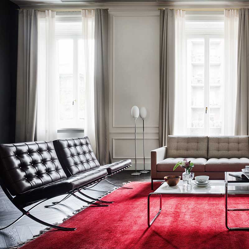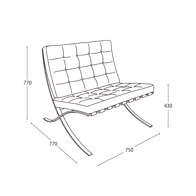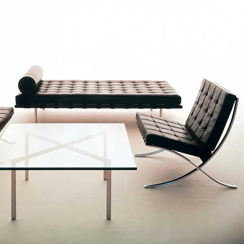 20世紀で最も有名な椅子のひとつであり、モダンデザインのアイコンともいえるバルセロナチェア。