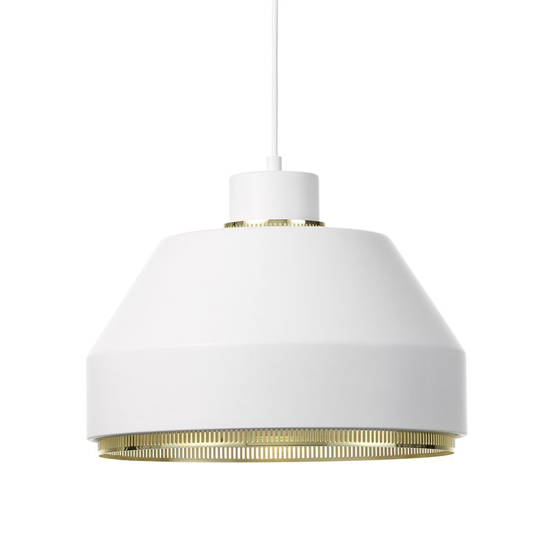 外側と同じくホワイトに塗装されたシェードの内側で反射し合い明るさを増した光は、開口部の真鍮リングを通ることで、まぶしさが軽減され、柔らかく放たれます。