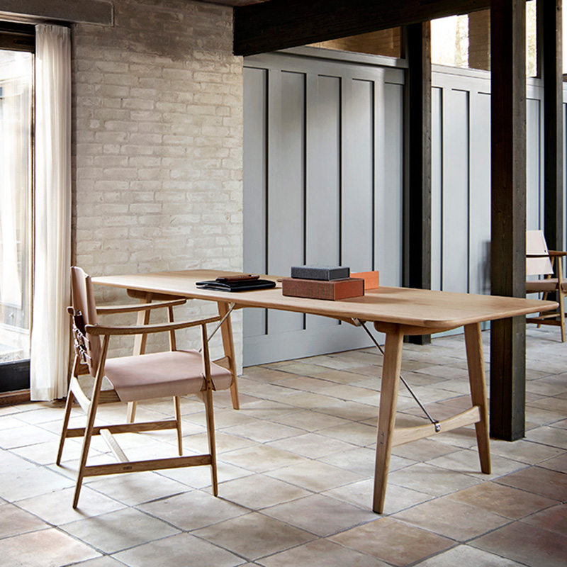 いずれも控えめな美学と耐久性を考慮した構造が特長となっています。カールハンセン&サン社のBM1160 ハンティングテーブル。
