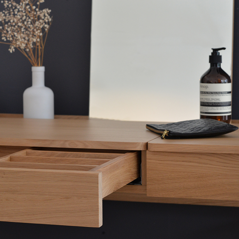 機能的なデザインのパラドレッシングテーブルは、ドレッシングテーブルとしてもデスクとしても幅広くご利用いただけます。