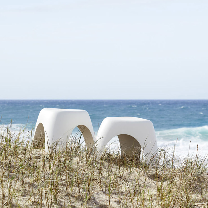 スタッキングが可能なプラスチック製のスツールは、屋内だけでなく屋外でも使用できます。