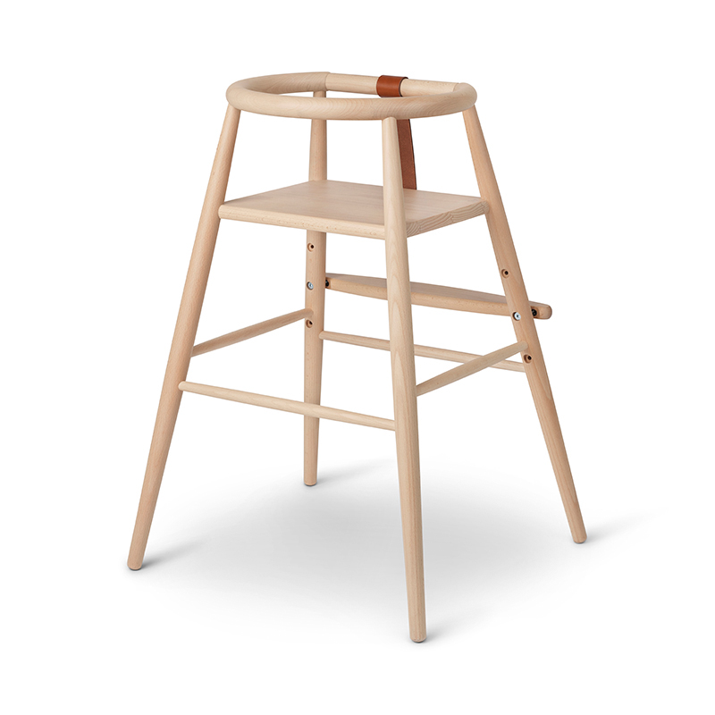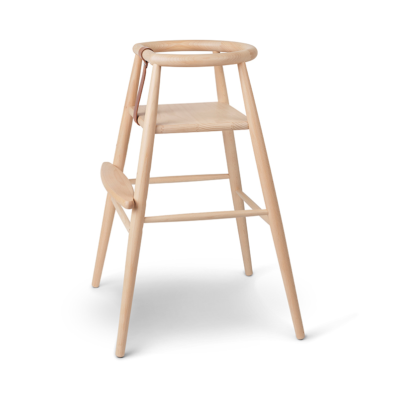 卓越した職人技と優れたデザイン性から高い評価を受けるND54ハイチェアは、素材にFSC®認証を受けた無垢のビーチ材を使用し、サドルレザー製の安全ベルトを装着しています。無毒性のマットラッカーで丁寧に仕上げられているため、カビの発生がなく、お手入れも簡単です。