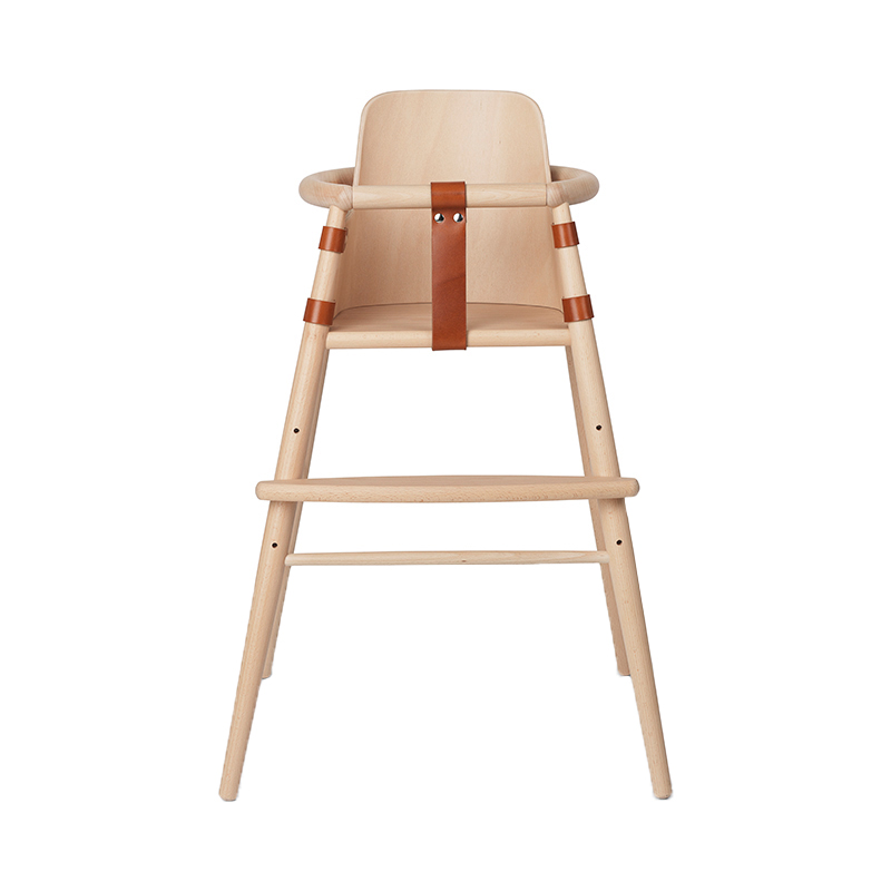 卓越した職人技と優れたデザイン性から高い評価を受けるND54ハイチェアは、素材にFSC®認証を受けた無垢のビーチ材を使用し、サドルレザー製の安全ベルトを装着しています。無毒性のマットラッカーで丁寧に仕上げられているため、カビの発生がなく、お手入れも簡単です。