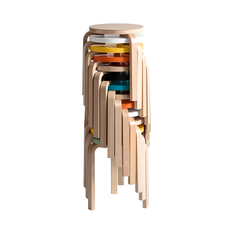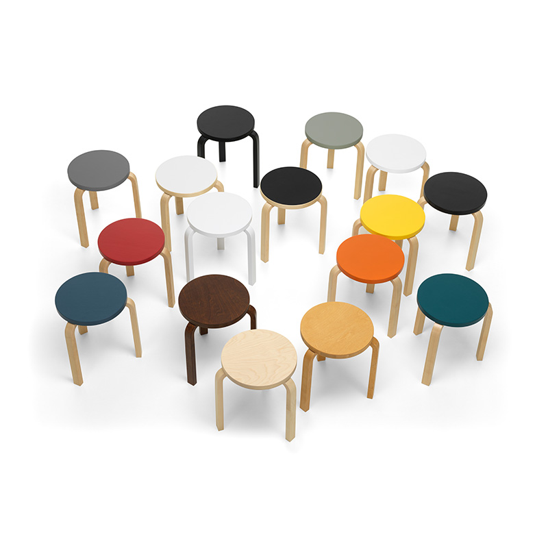 アルヴァ・アアルトにより1933年にデザインされたスツール 60は、座面と三本の脚という最小限の要素で形作られています。