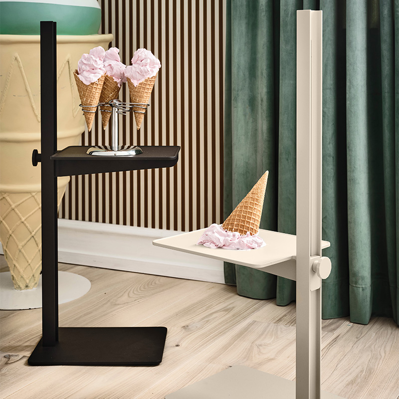 ミュージアムサイドテーブルはアルミとスチールで作られた高さ調整可能なテーブルです。