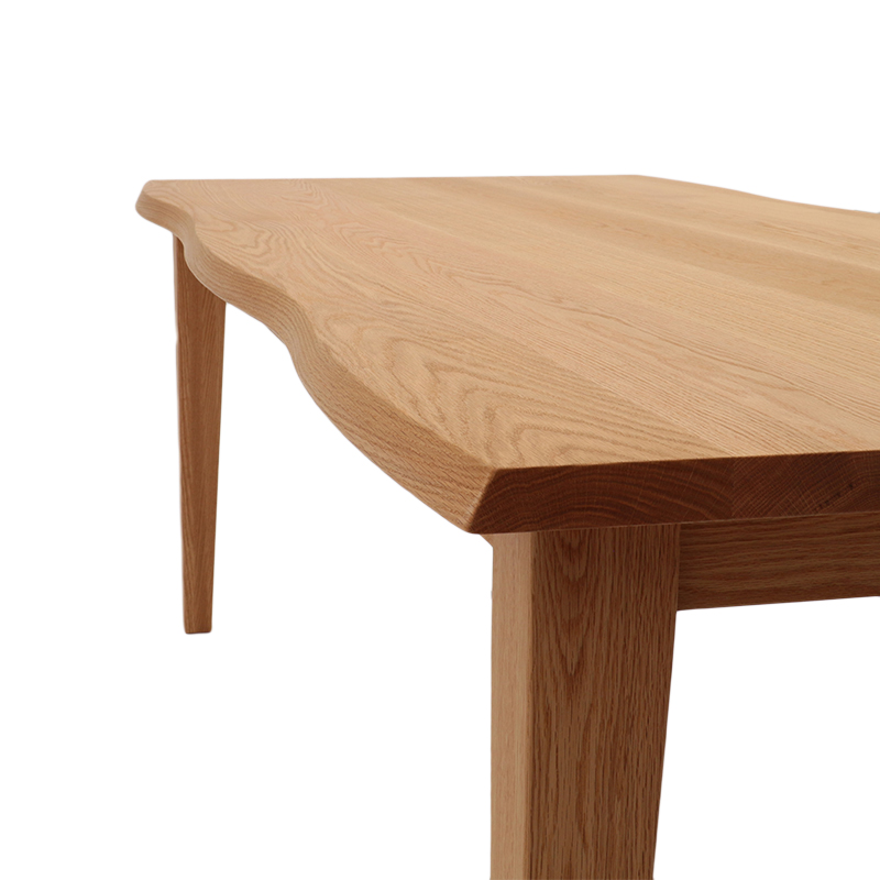 A-TYPEのテーパードストレートレッグはシンプルな見た目で椅子の収まりもよいデザインで、ライブエッジの天板は、よりナチュラルな雰囲気を作りだします。