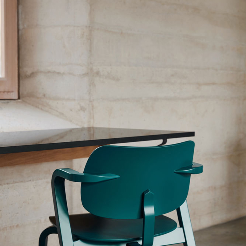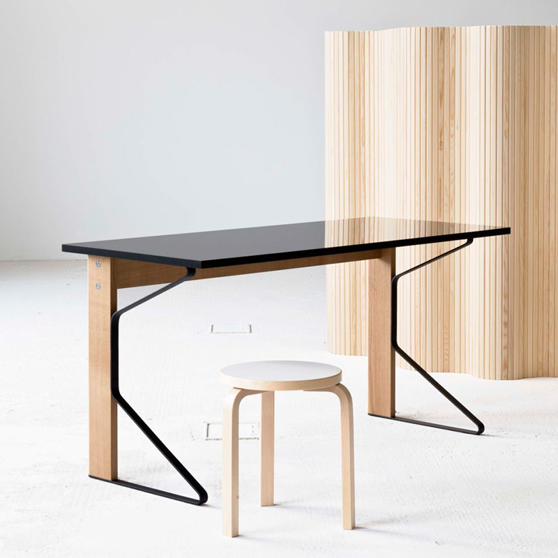 ”縦方向”の支えとなる頑丈な木製部分と、”斜め方向”の支えとなるスチール部分。異なる素材の組み合わせが特徴的なテーブルは、耐久性はもちろんのこと、全体のデザインにリズムをもたらし、独自のシルエットを形作っています。