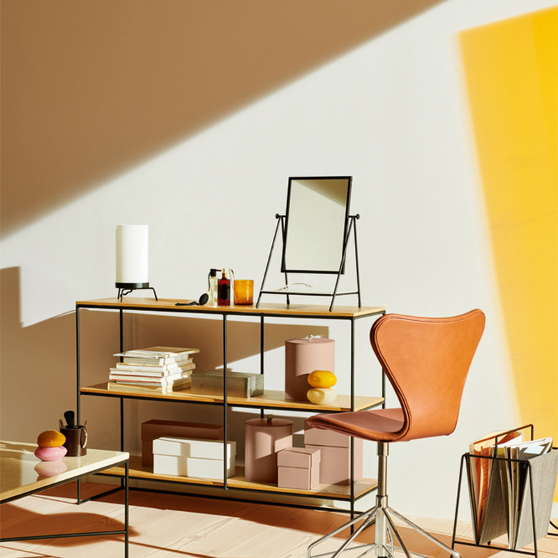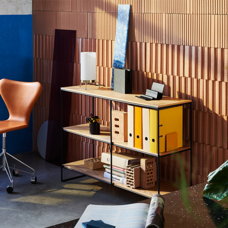 部屋のデザインを形作る(プランする)のに役立つことから名付けられたシンプルでありながらも印象的なこのシェルフは、高さと構成の異なる3種類のモデルで展開しています。