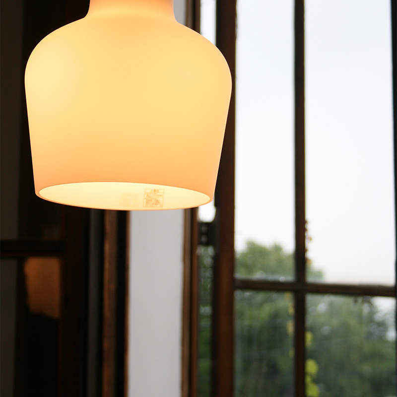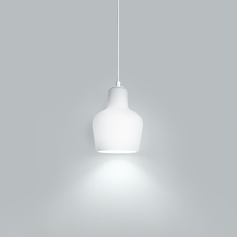 明りが灯っていてもいなくても、彫刻のように完成された美しさが見事なA440ペンダントライト。 吹きガラスの不透明な白色のランプシェードは、アルヴァ・アアルトの照明に共通する哲学が貫かれ、 直接的な光の眩しさを軽減し、温かく柔らかい光として空間に拡散する合理的なデザインです。シェード全体が優しく灯り、複数を並べてコーディネートすれば、温かみのある雰囲気を演出できます。