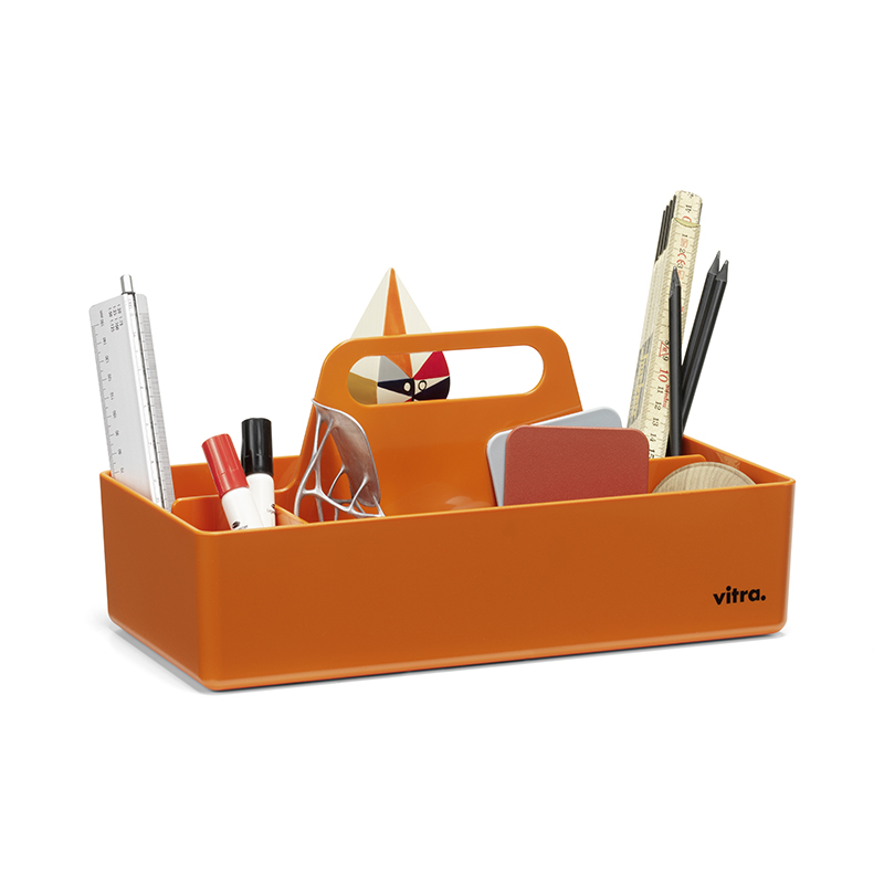 アリク・レヴィがデザインしたツールボックスは、デスク周りの文房具やリビング周りの小物をすっきりと整理できる、実用的なアイテムです。ハンドル付きでコンパクトなデザインは、簡単に必要な場所へ持ち運ぶことができます。家庭廃棄物から生成された再生プラスチックを用い、100%リサイクル可能です。