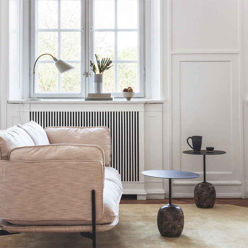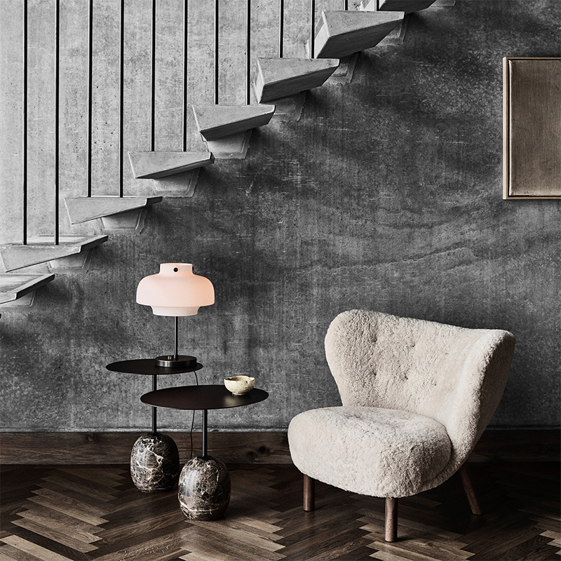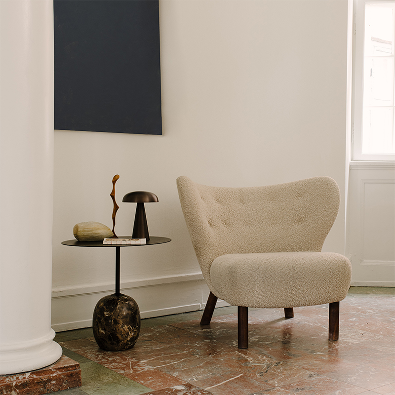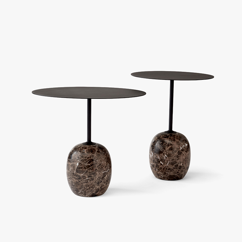 イタリア人デザイナーLuca Nichetto(ルカ・ニチェット)によるデザインの「ラト テーブル」。逆さにしたロリポップキャンディーから着想を得てデザインされました。デザイナーのルカが生まれたイタリアのムラーノ島の職人たちのノウハウが、大理石とスチールの接合部分に活かされています。スリムな楕円形のテーブルトップと楕円形のベースがバランスよく配置されています。自然の色や素材にこだわるルカらしいデザインで、ベースの大理石は自然が生み出す柄が美しく、1点ごとに個性がある点も魅力のひとつです。