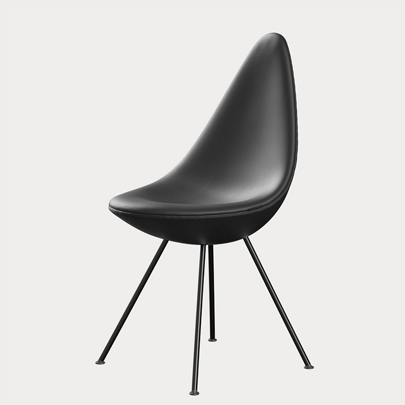 北欧デンマーク・コペンハーゲンのSASロイヤルホテル建築の一環として製作、アルネ・ヤコブセンによりデザインされたDROP CHAIR(ドロップチェア)。