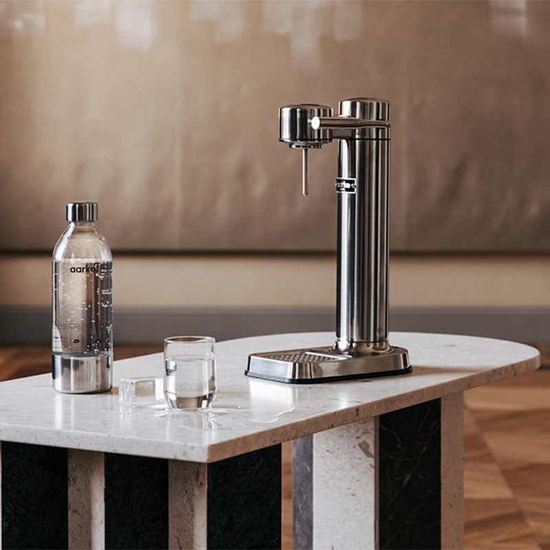 ステンレス製のスリムなボディに、北欧らしいシンプルで洗練された美しさを備えた、最新モデルのソーダーマシン。