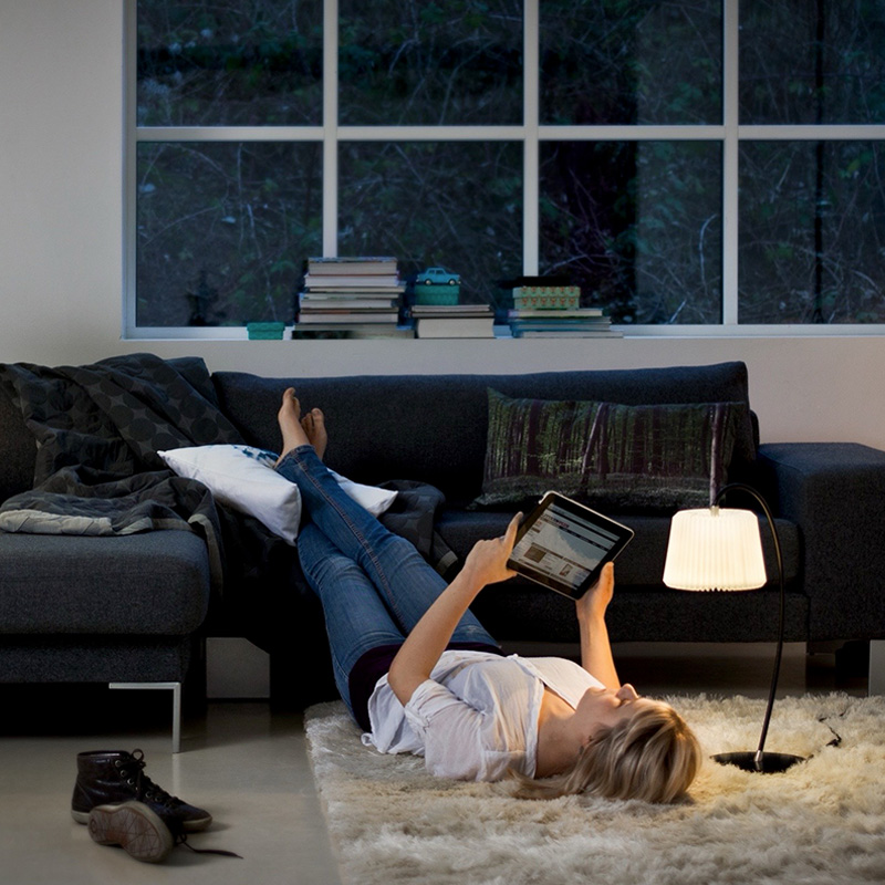 自然に咲くマツユキソウ(スノードロップ)の姿からインスピレーションを受けデザインされた「SNOWDROP」。可憐な白い花が下を向いて咲く様子が表現されています。アーム部分は無段階に角度を調節することができ、シェードは常に真下を照らすようになっています。柔らかい明りが優しく広がるテーブルランプです。