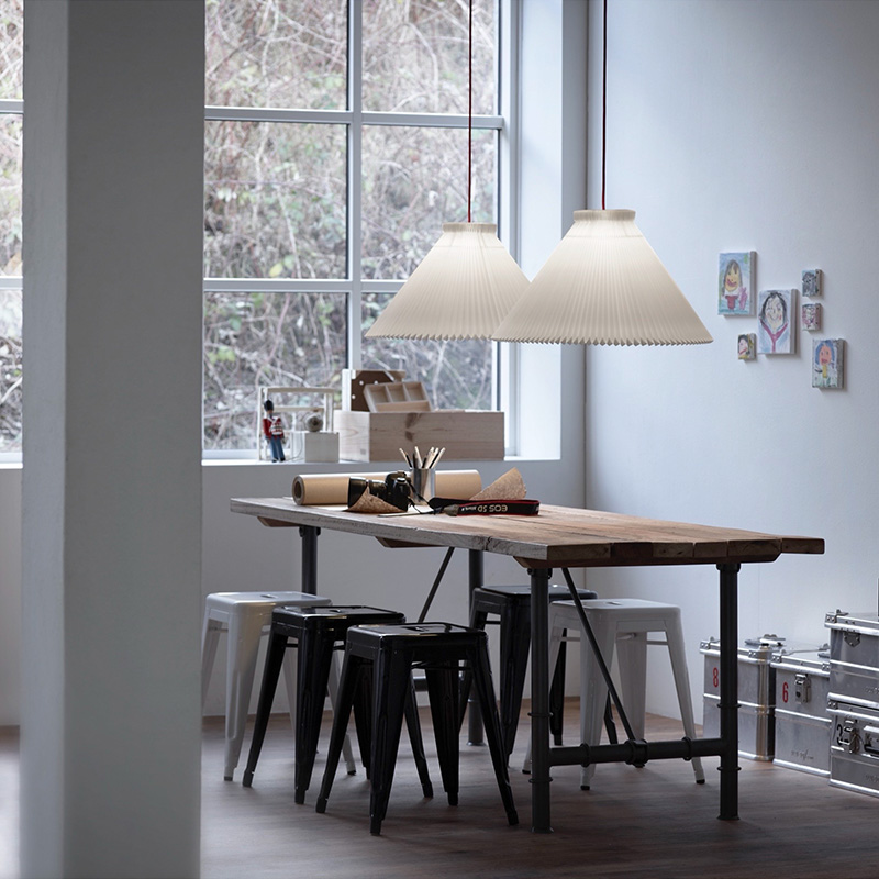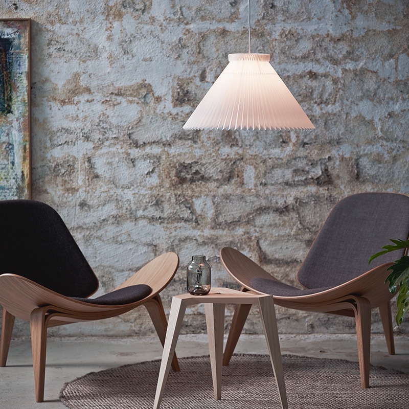 日本の折り紙にも影響を受けデザインされた、LE KLINTのCLASSICシリーズ。規則的に続く折りは美しい陰影を生み出し、LE KLINTの原点となっています。シェードは創業時から変わらず現在もデンマークの工房で熟練した折り職人によってひとつひとつ丁寧につくられています。