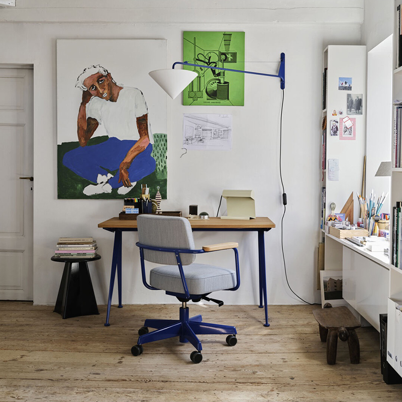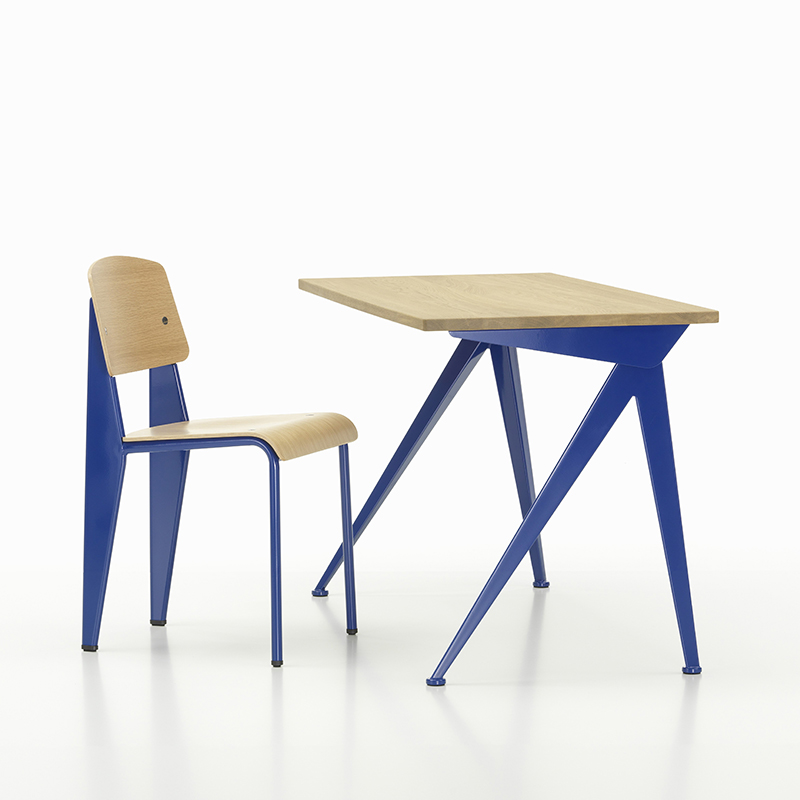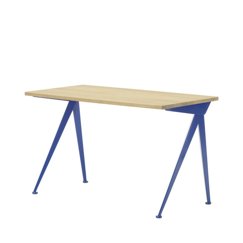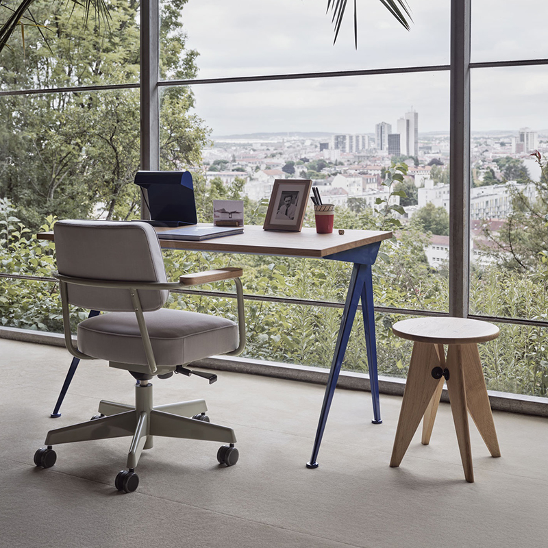 ジャン・プルーヴェによってデザインされた「コンパス ディレクション」は、シャープでエレガントに広がるスチール製の脚がコンパス(フランス語で‘le compas’ )の針を端的に表現しています。その合理的な構造は、デザイナーであり、エンジニアでもあるプルーヴェならではの特徴と言えます。オイル仕上げのソリッドウッドが用いられた天板と、スチール製の脚とのダイナミックなコントラストがホームオフィスの空間を魅力的に彩ります。