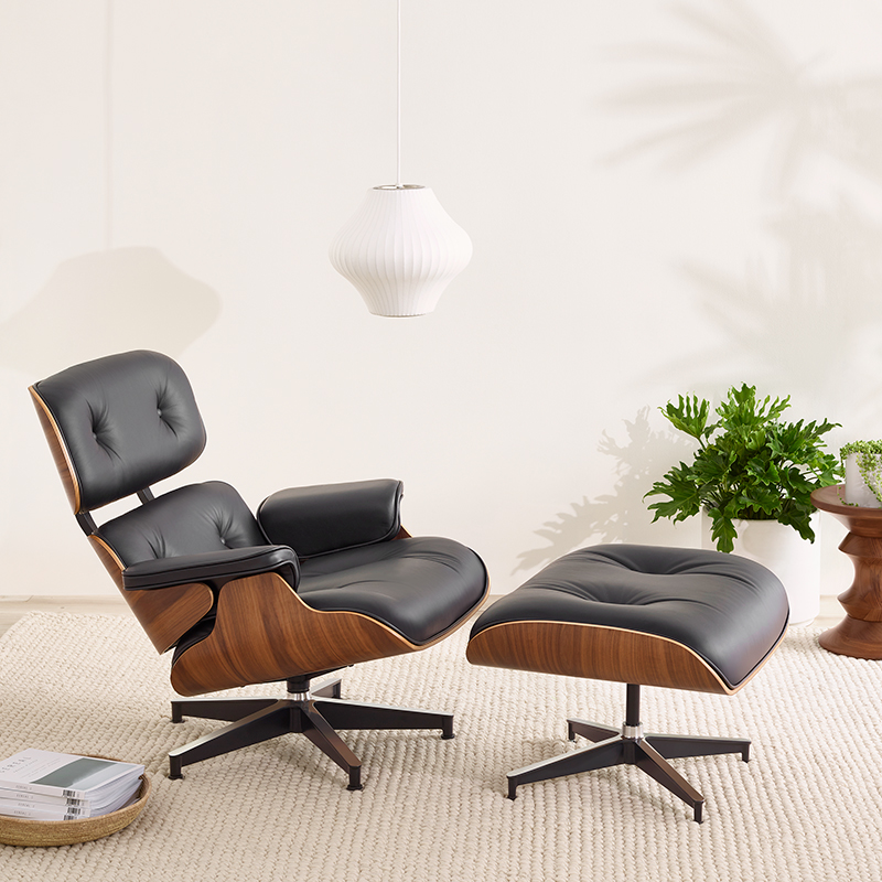 映画監督のビリー・ワイルダーへの誕生日プレゼントとして贈られたことでも知られています。EAMES LOUNGE CHAIR&OTTOMAN(イームズラウンジチェア&オットマン)は、チャールズとレイがプライウッドを成型できないか試みたことから、そして家庭のリビングルームに多く見られるラウンジシーティングをより良いものにしたいと望んだことから生まれました。