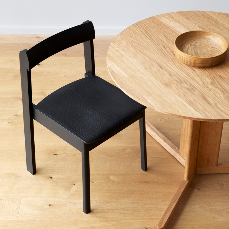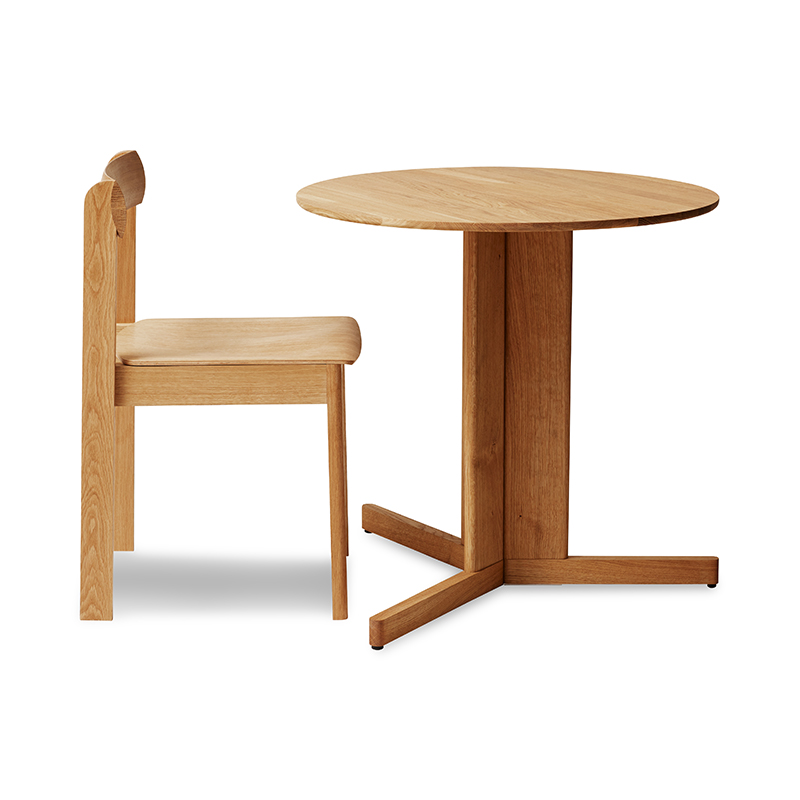 三つ葉という意味の「Trefoil(トレフォイル)」の名がつけられており、3本の脚が円のテーブルトップを支えることで、素材の見た目以上に実用的な軽さを体現しています。