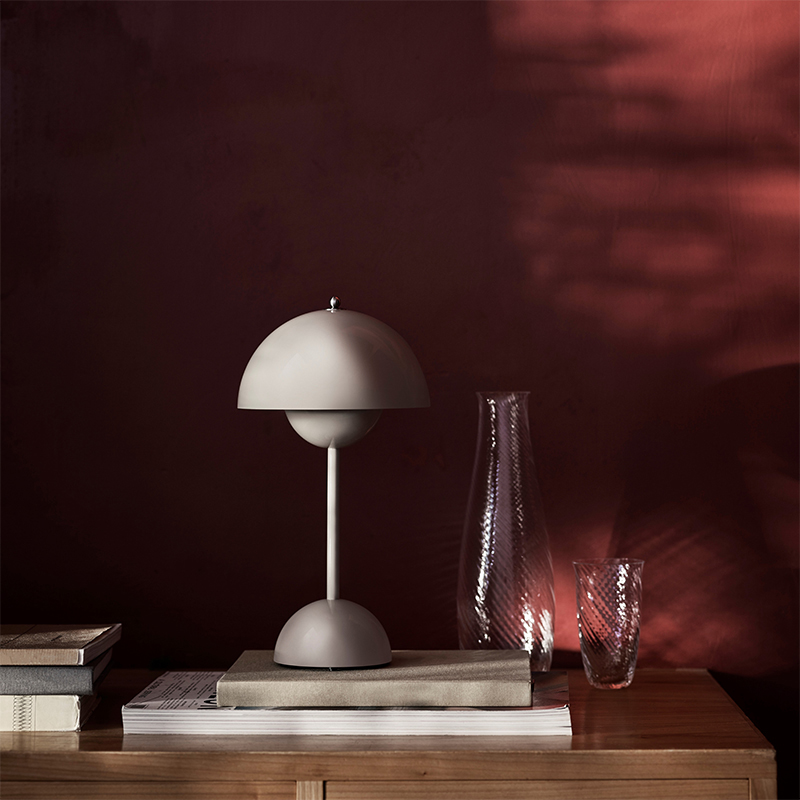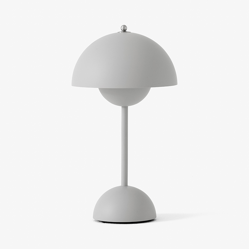 ポータブルランプであるVP9は、フラワーポットのテーブルランプタイプよりも少し小さく、意図的に軽量に設計され、電源はUSB充電ケーブルを採用しています。